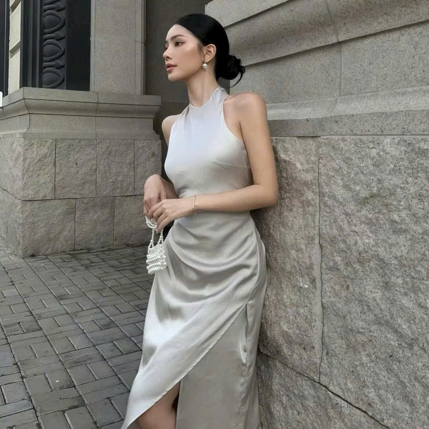 - Thiết kế cổ yếm thanh thoát: Giúp tôn lên phần vai và cổ, tạo vẻ đẹp thanh lịch nhưng vẫn quyến rũ.
