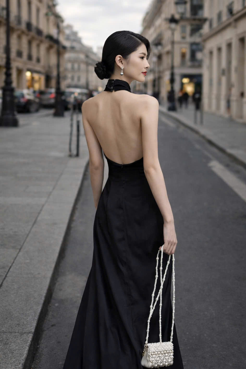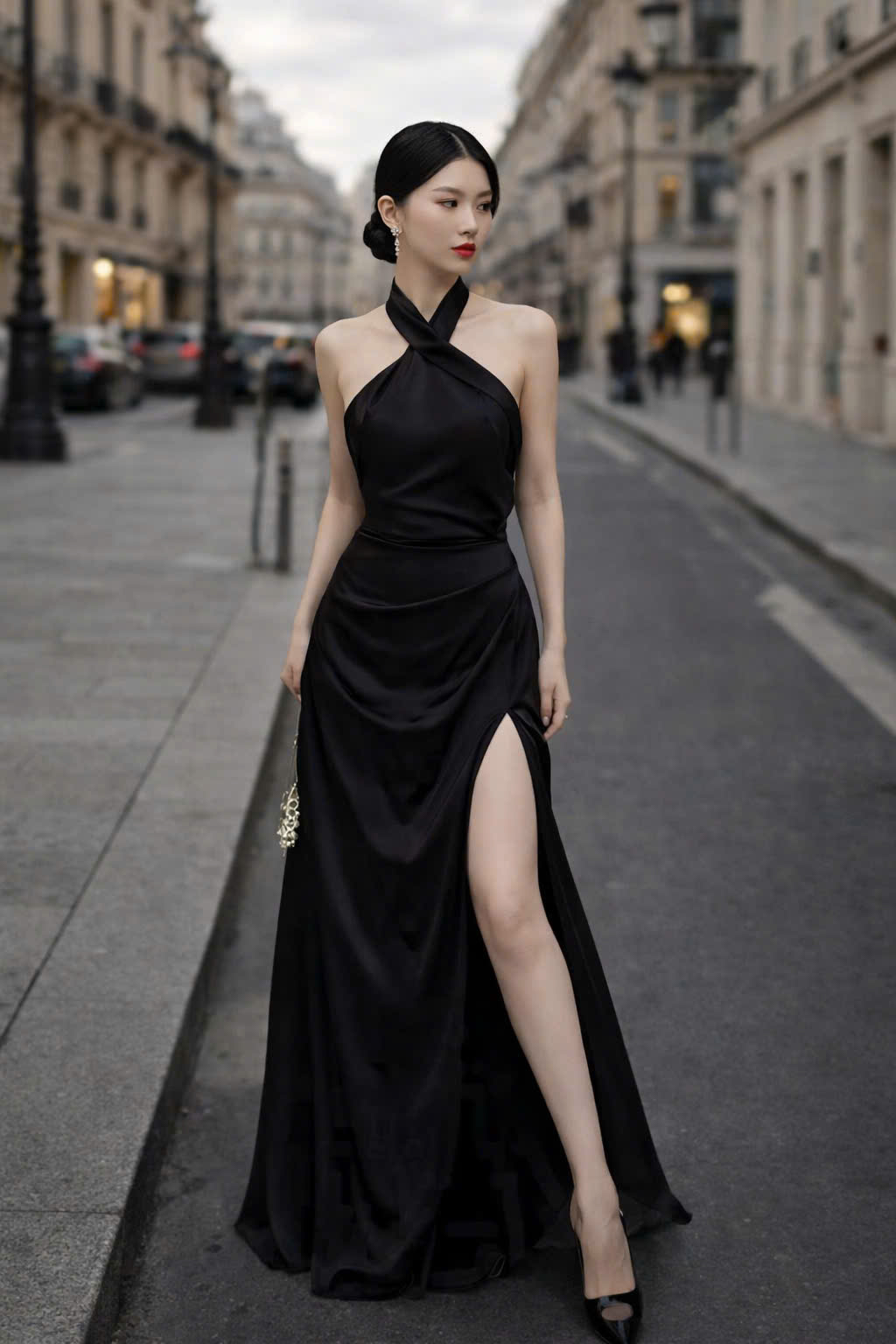 Đầm lụa Mooné Noir phiên bản cổ yếm là tuyên ngôn của vẻ đẹp hiện đại, tự tin và đầy lôi cuốn. Đây không chỉ là một chiếc đầm, mà là tác phẩm nghệ thuật tôn vinh những đường cong tuyệt mỹ của phái đẹp.